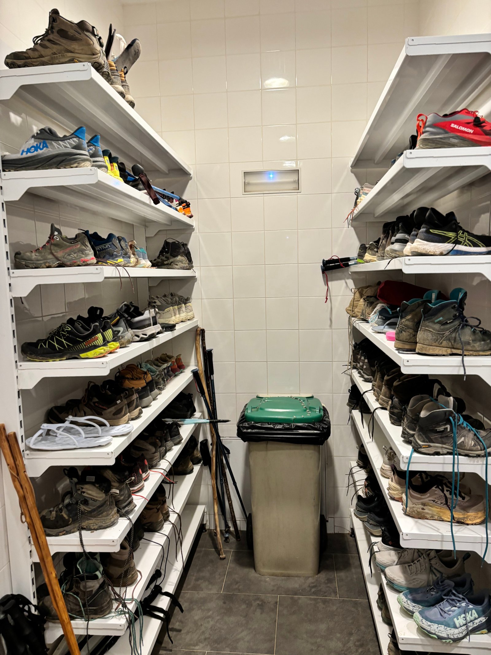 We checked in, received our bed numbers, and were shown where to leave our shoes. And boy was the room of shoes a sight to behold. All kinds of brands and types but almost all of them caked with mud. An interesting observation: the shoe room didn’t have any shoes that matched the brand we were wearing. It seems we were the only ones with our particular footwear choice.