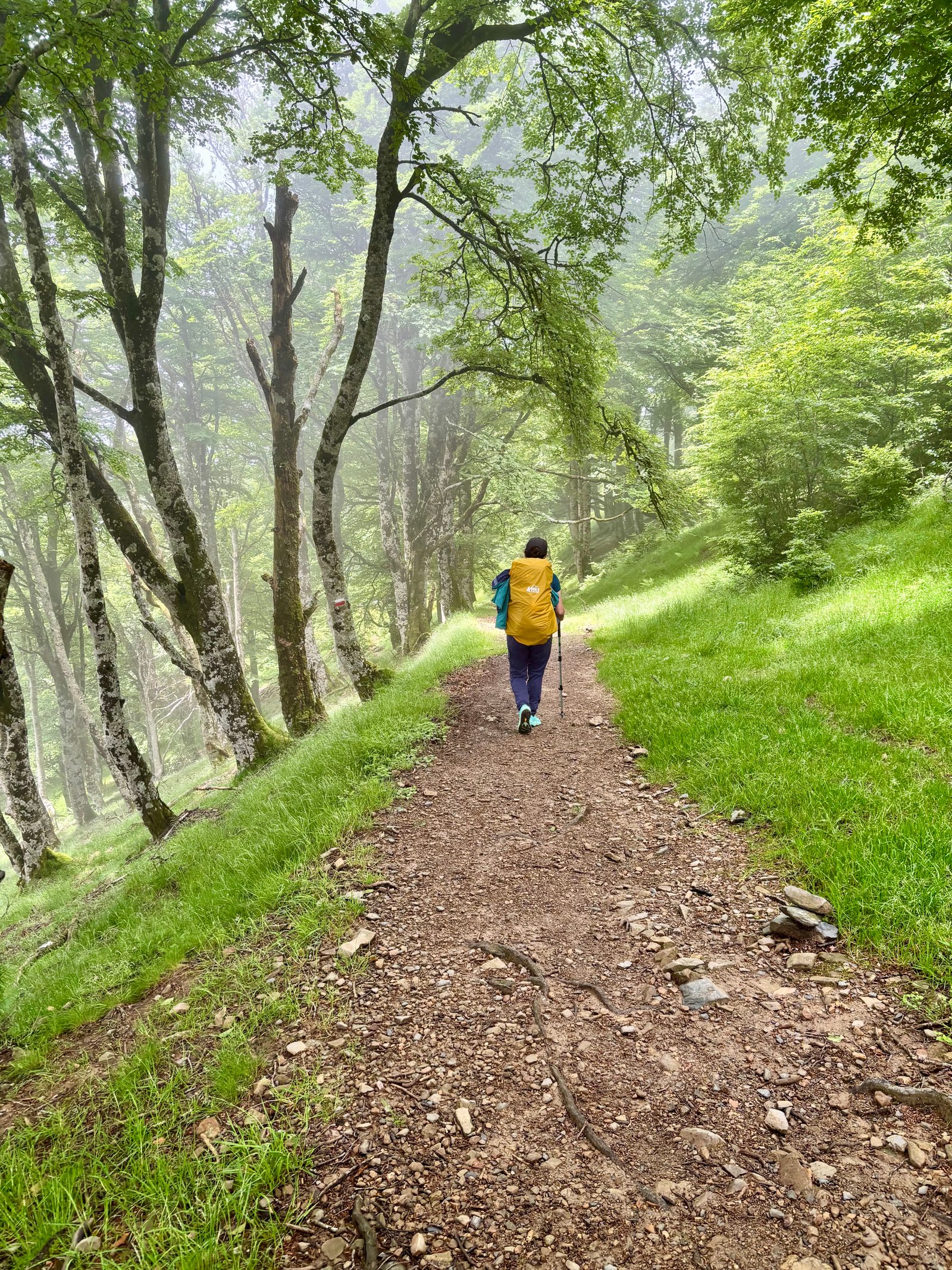 We set out into the misty morning, rain jackets on, backpacks covered with rain shields. The world had shrunk to just a few meters in any direction, but we kept climbing upward.