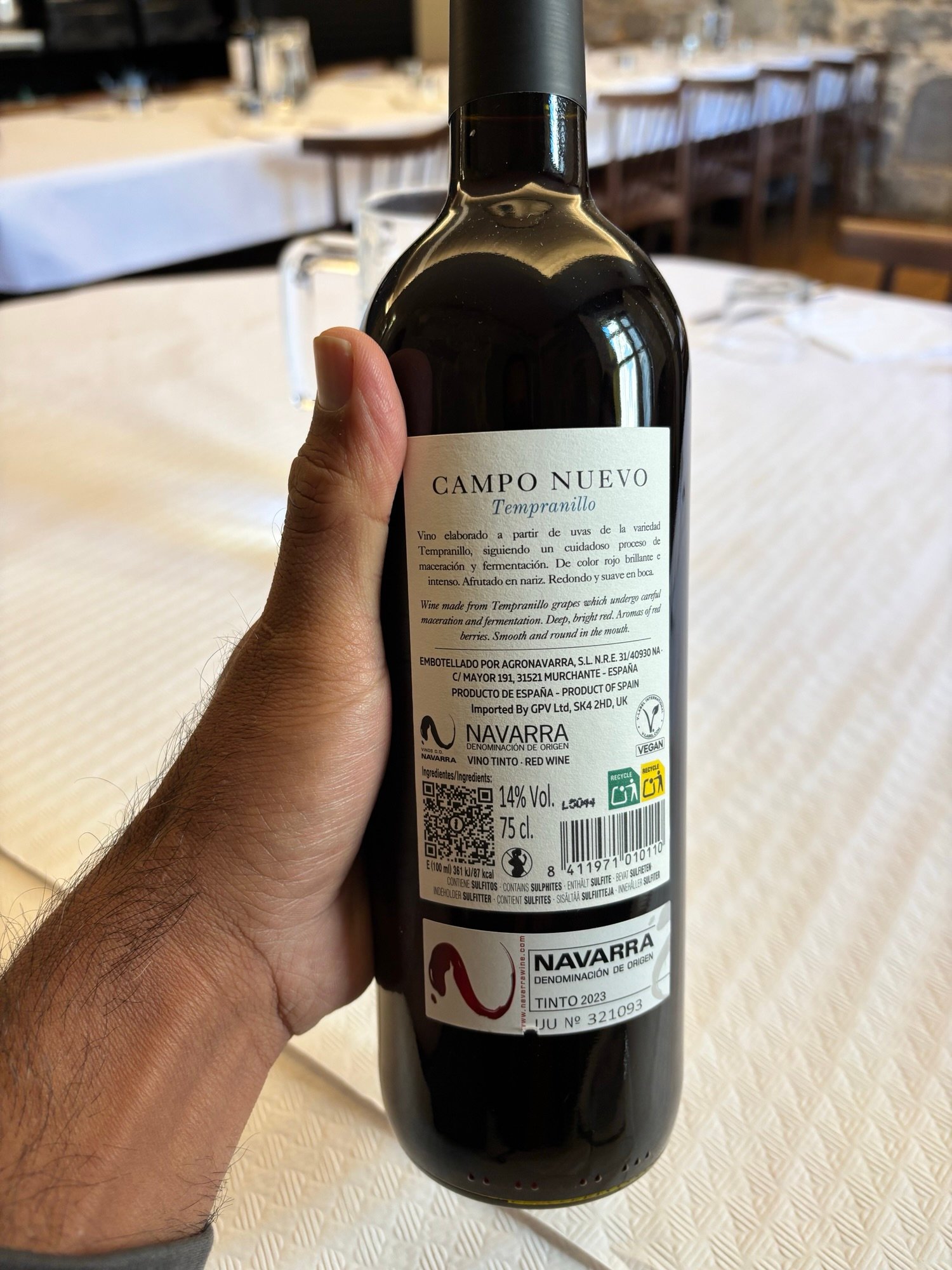 The wine came from the Navarra region and was excellent.