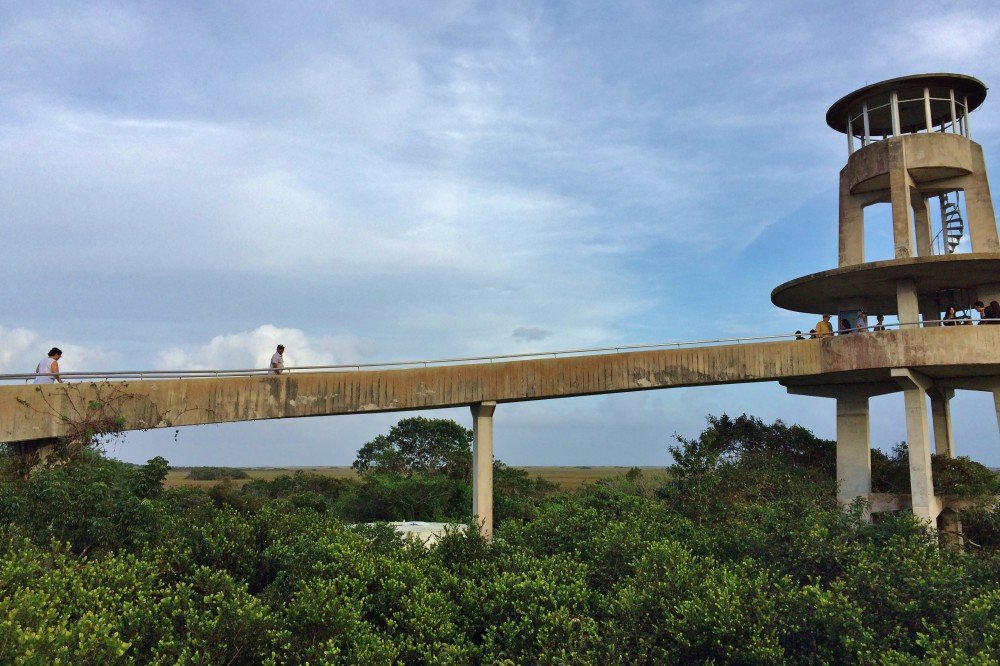 At the tour’s halfway point, we stopped and got off the tram to take a sloped ramp up onto a 45-foot high observation deck. From the deck, you could see 20 miles out in all direction of the everglades. We even saw a 16 foot alligator swimming down a creek while a snapping turtle came bravely swimming underneath him. All of us got on our toes anticipating an exciting battle but alas I guess the alligator must have been too full from his last meal to do anything.